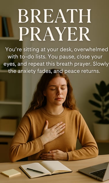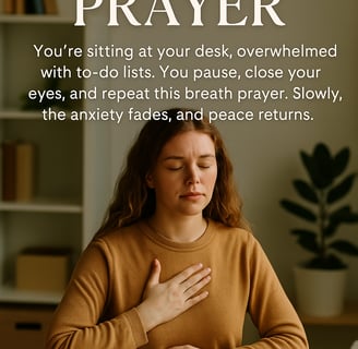 Picture This: You're sitting at your desk, overwhelmed with to-do lists. You pause, close your eyes, and repeat this breath prayer. Slowly, the anxiety fades, and peace returns.